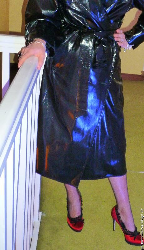 L'imper vernis noir est un manteau vieux comme le monde et qui est toujours très tendance et à mon goût trop peu mis en valeur . . .